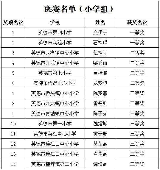 赛事自启动以来,覆盖英德全市77所中小学校,各学校团委、少工委利用团(队)日活动开展中华优秀传统文化和英德本土文化的学习普及,并从班级赛、校级赛、片区赛层层选拔,最终共有29名选手进入决赛。经过激烈角逐,最终评选出小学组、初中组、高中组一、二、三等奖及优秀辅导老师奖。